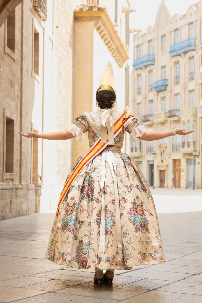 Desde mis inicios como fotógrafa, tuve claro que quería dedicarme a un ámbito que conectara con mis raíces y con la identidad de mi tierra. La indumentaria tradicional valenciana es un arte en sí misma: los tejidos, los bordados, los peinados, las joyas y los colores hablan de siglos de tradición. Mi objetivo es reflejar todo ese trabajo artesanal con el respeto y la sensibilidad que merece, cuidando cada encuadre y cada luz para que la fotografía esté a la altura de lo que representa.